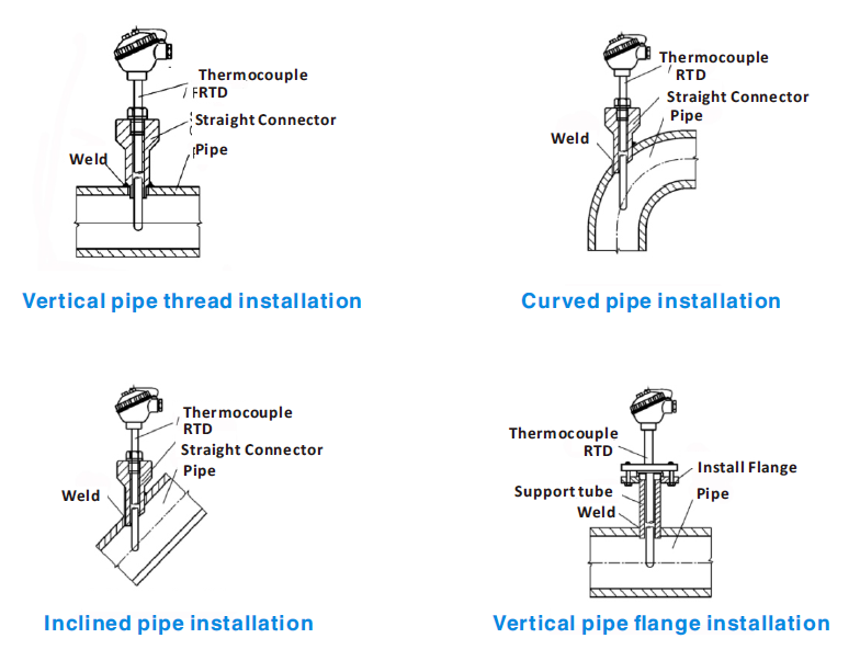 Installation Height: Generally L-l=(50~150)mm. When the measured temperature is high, L-l should be increased appropriately. (L is the total length, l is the insertion length)