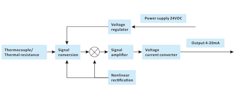 A temperature transmiter converts temperature sensor signals into standardized electrical signals. Based on the Seebeck Effect, a voltage difference (ΔV)is generated between two dissimilar metals.