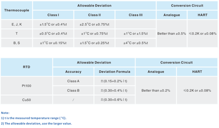 Linearization correction function, thermocouple temperature transmitter has cold end temperature compensation.