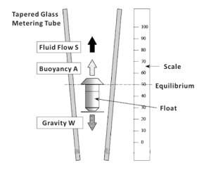 As the flow increases this float moves to a higher position until its resistance to the fluid flow is balanced of the float is a measure of the flow rate.The flow rate values can be read on a scale.