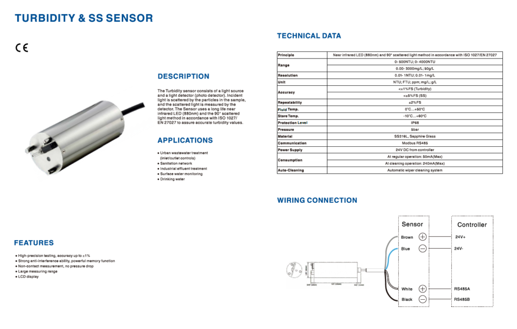 Accuracy: <±1% FS (Turbidity), ±5% FS (SS)