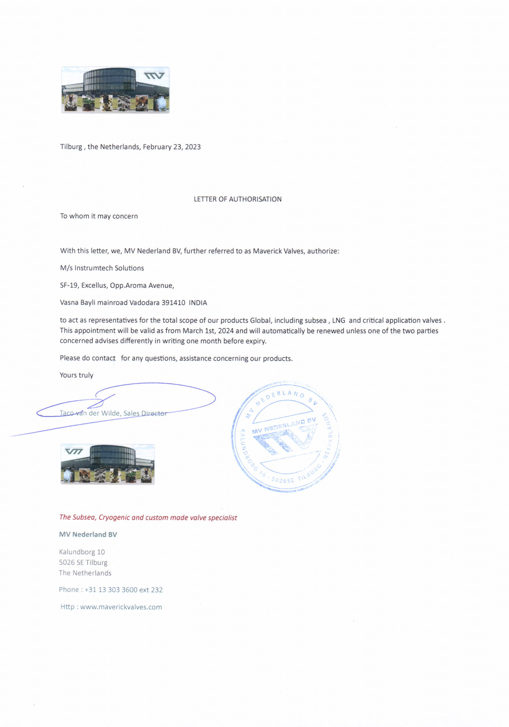 Authorization MV Valve
